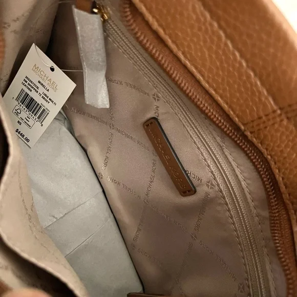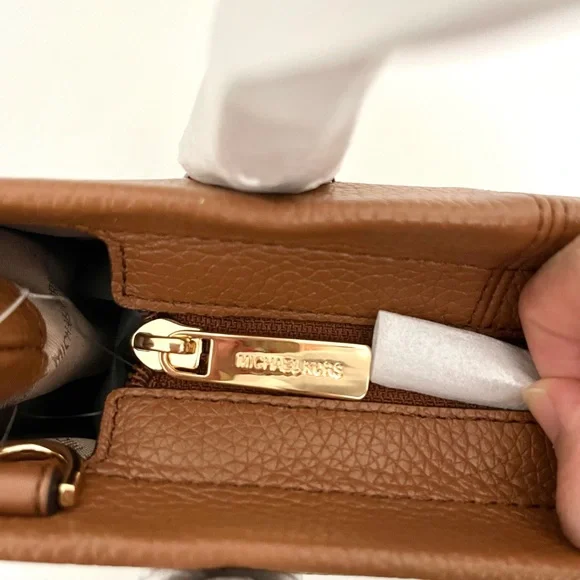 100% Michael Kors authentic guarantee and firm price! Details • Crossbody bag• Pebbled leather• 100% leather• Gold-tone hardware• 9.25”W X 7.75”H X 3.75”D• Handle drop: 3.25”• Adjustable strap: 20.25”-23.75”• Interior details: back zip pocket, front slip pocket• Lining: 100% polyester• Zip fastening• Imported